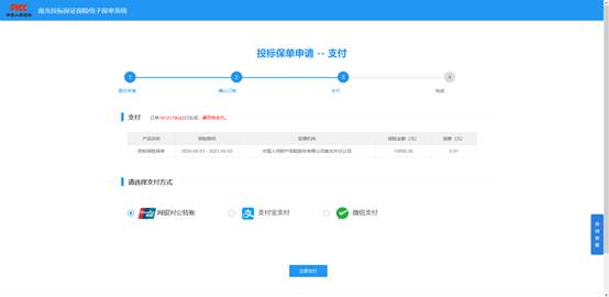 (注:申請(qǐng)保單過程中如遇特殊情況退出頁面,可通過點(diǎn)擊繳納保證金頁面的保單申請(qǐng)重新進(jìn)入,系統(tǒng)自動(dòng)跳轉(zhuǎn)至上一步未完成頁面)
