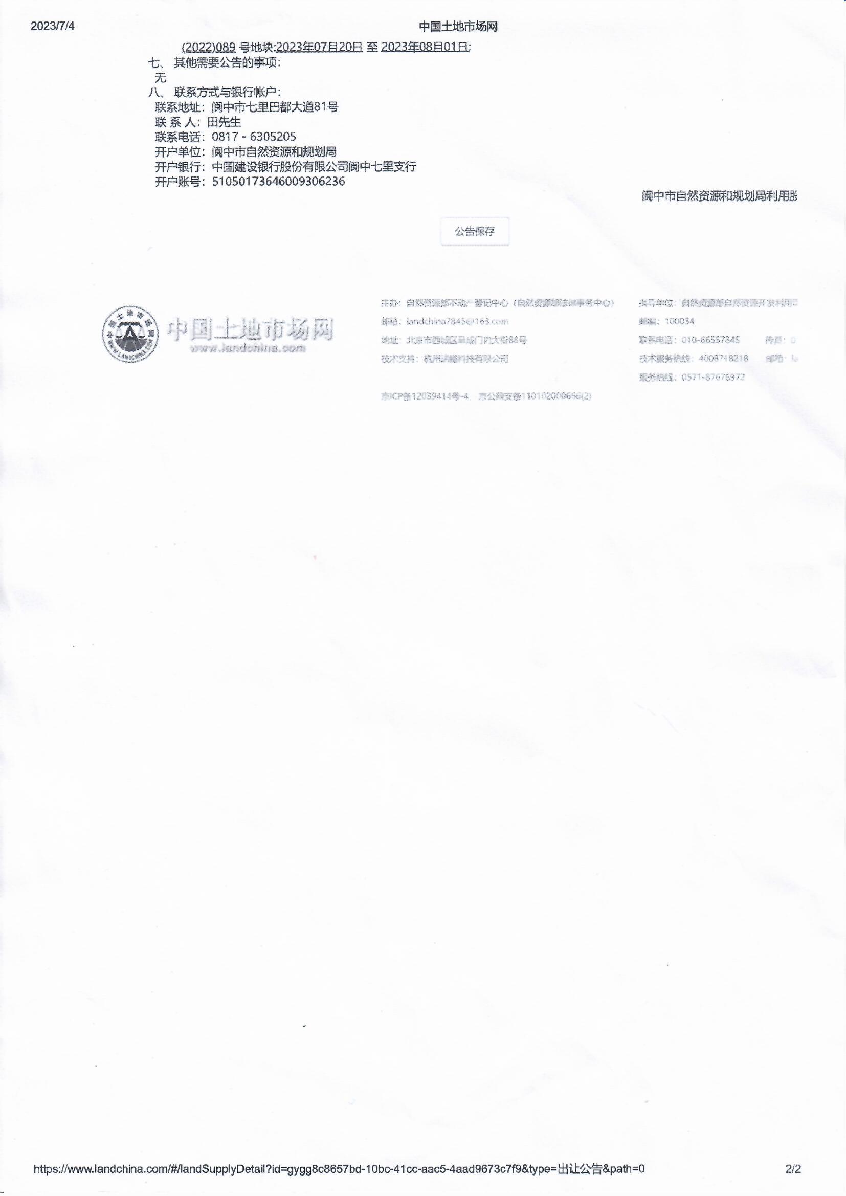 閬中市自然資源和規(guī)劃局利用股國(guó)有土地使用權(quán)掛牌出讓公告(閬?zhàn)砸?guī)告[2023]8號(hào))