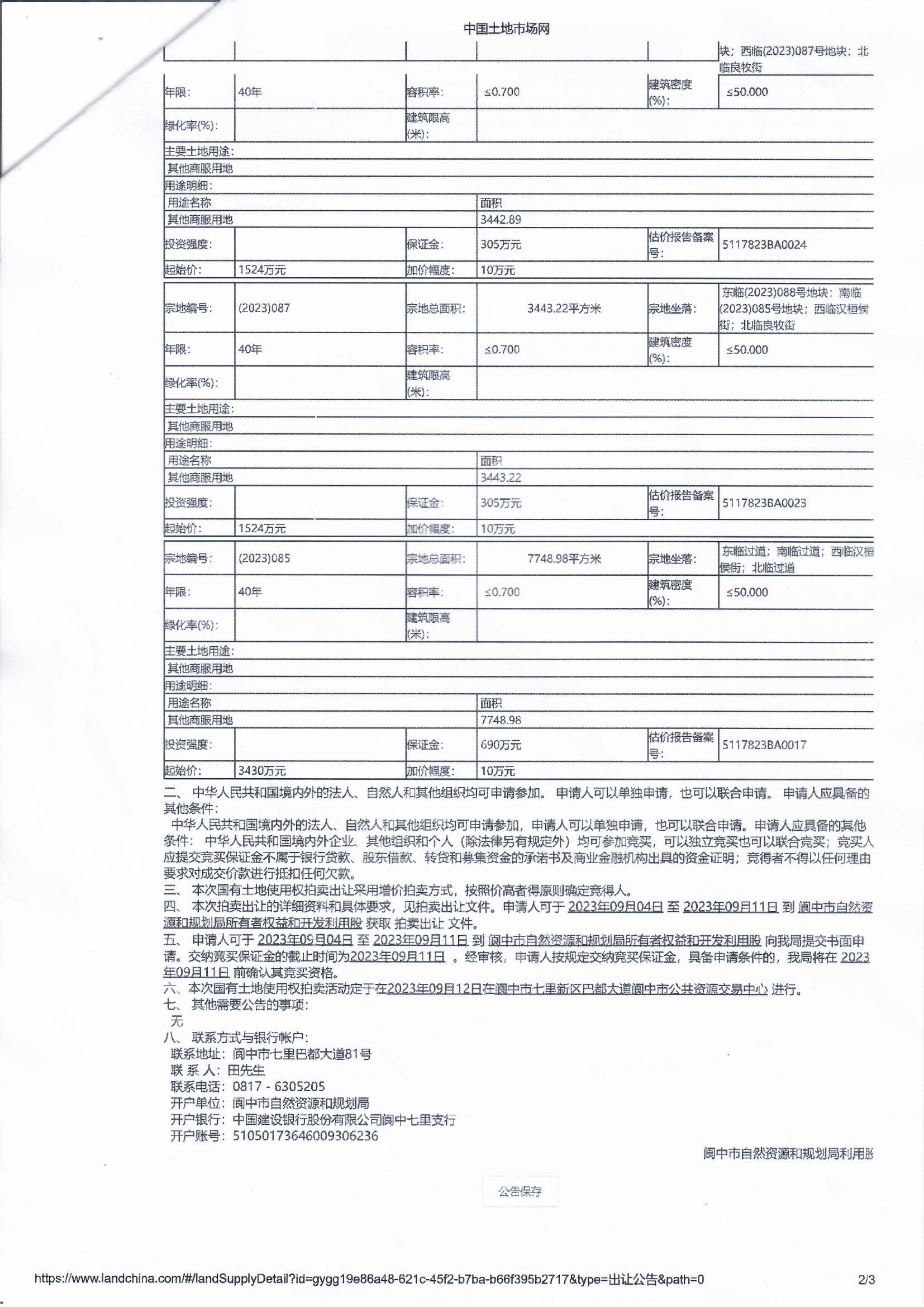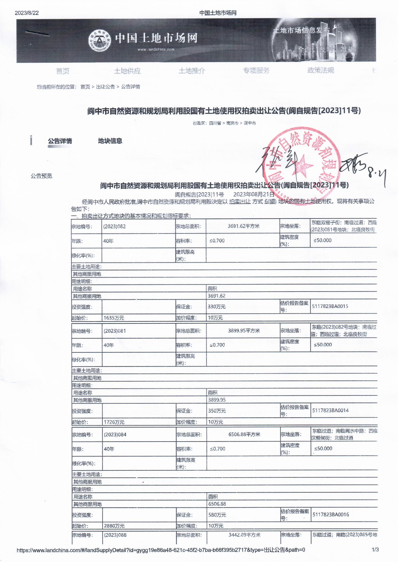 閬中市自然資源和規(guī)劃局利用股國有土地使用權(quán)拍賣出讓公告(閬自規(guī)告[2023]11號)