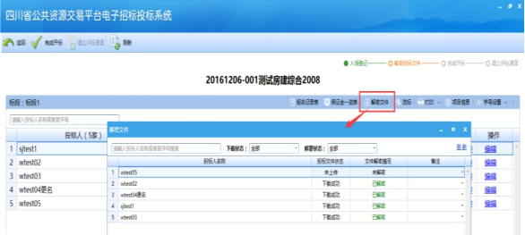 點(diǎn)擊“解密文件”進(jìn)行投標(biāo)文件解密操作: