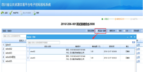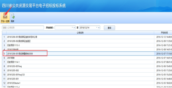 進(jìn)入開標(biāo)一覽表: