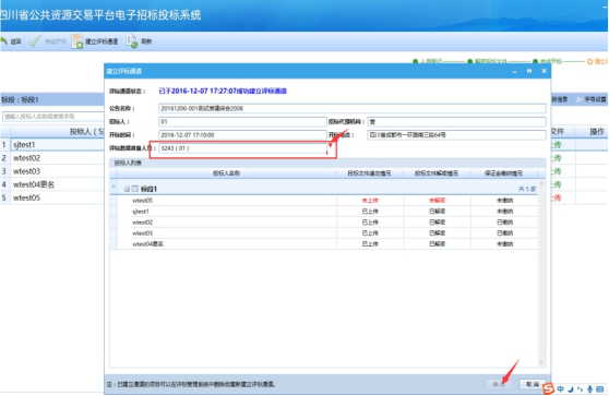 建立評(píng)標(biāo)通道時(shí),選擇評(píng)審數(shù)據(jù)準(zhǔn)備人員: