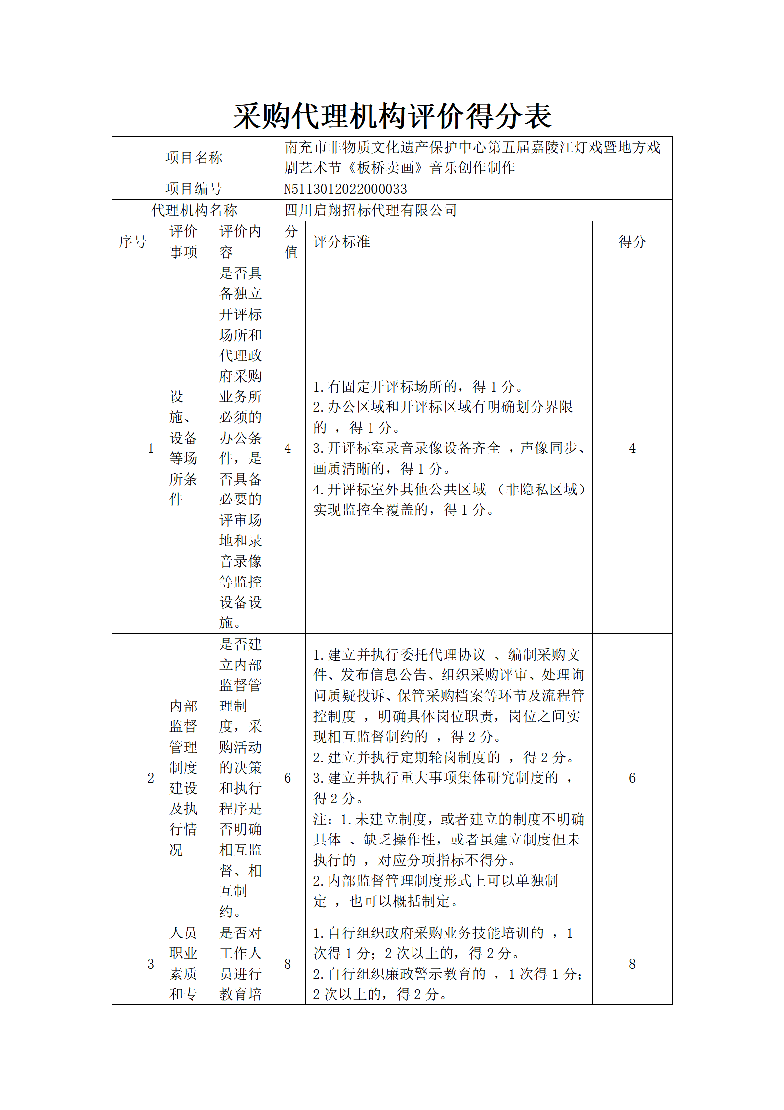 南充市非物質(zhì)文化遺產(chǎn)保護(hù)中心第五屆嘉陵江燈戲暨地方戲劇藝術(shù)節(jié)《板橋賣畫》音樂創(chuàng)作制作采購代理機(jī)構(gòu)評價